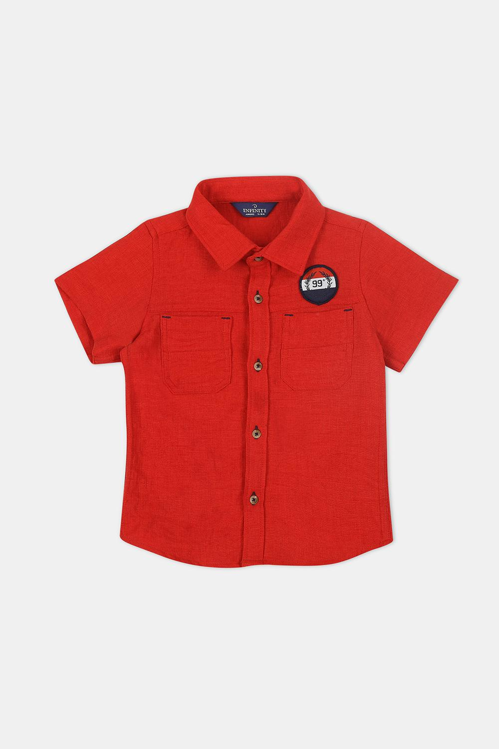 Infinity Boys solid Navy Twill Cotton L/s boys shirt. Badge on the chest.